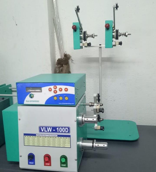 Vilas Enterprises manufactures semi-automatic winding machines with robust and sustainable design with long durability and multi-purpose. We are of the best winding machine manufacturers in Bangalore, Mumbai, Chennai, Pune, Delhi, Coimbatore, Hyderabad and other parts of India.Our range of winding machines are developed on microcontroller, which program parameters along with LCD panel and keypad to control the functioning of the machine. Different program parameters can be programmed into the microcontroller ship to enable it smooth functioning and can also be programmed to reset automatically or manually.